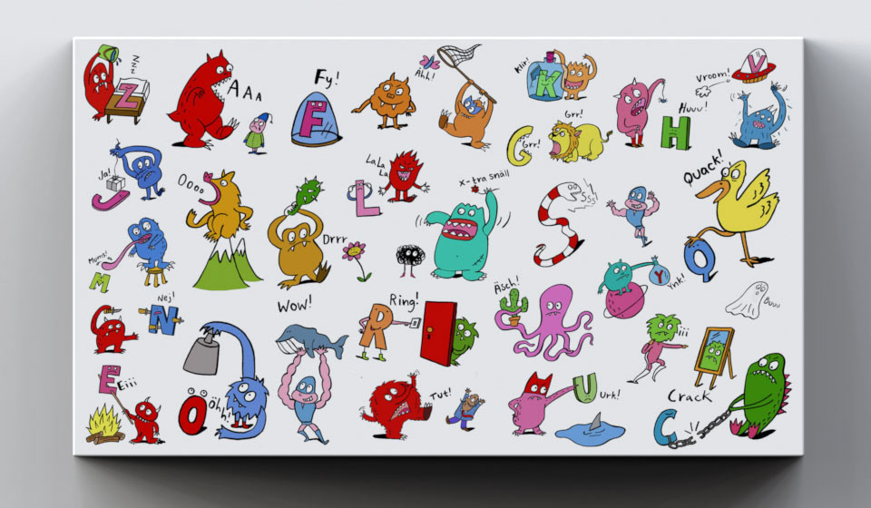 Ikea compatible shelf cover. Monster alfabeth decoration