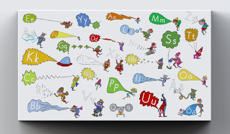 Ikea compatible shelf cover. ABC superheroes decoration