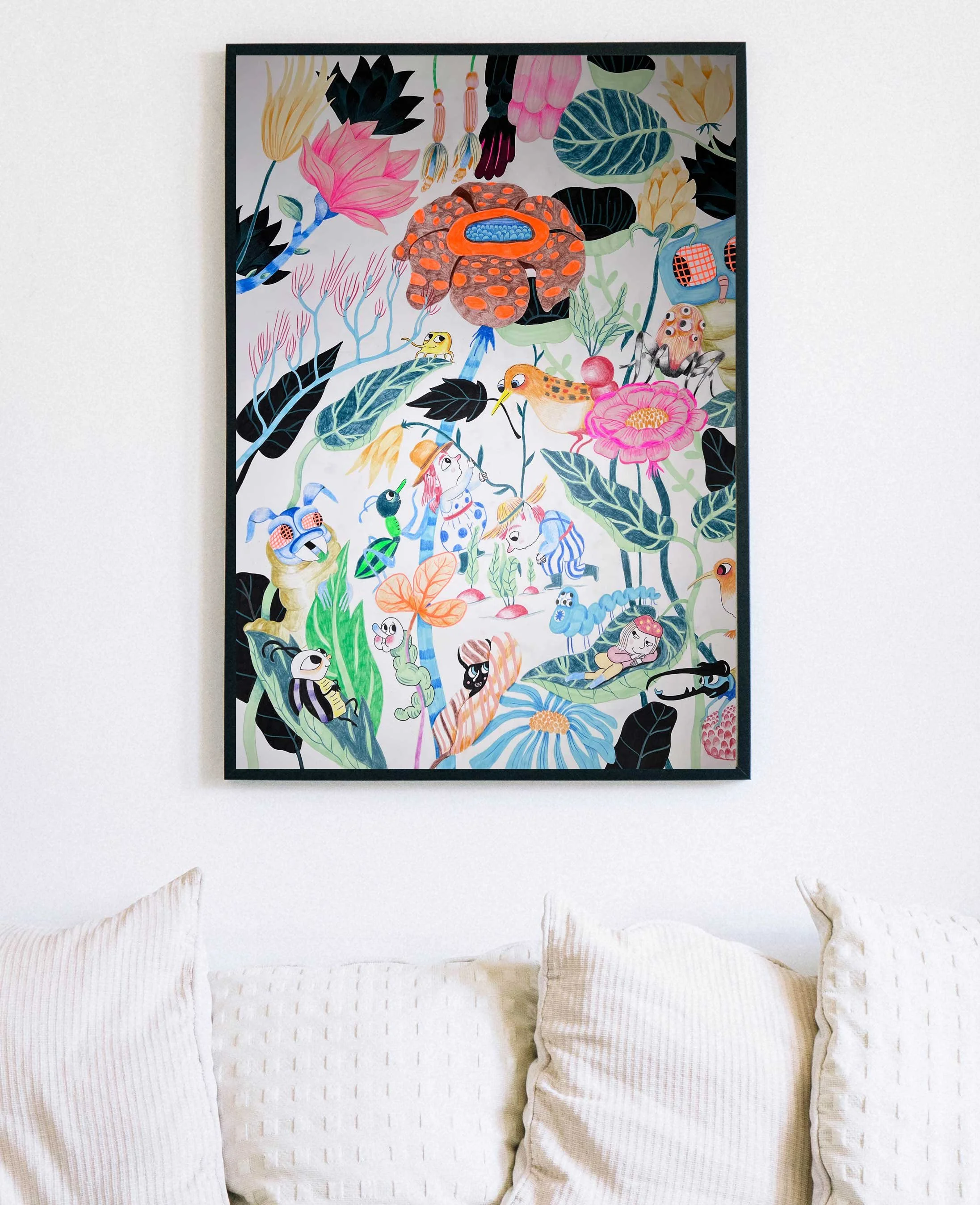 Lenticular print artwork (flip image). The characters are asleep or awake depending on which side of the image you are looking at.